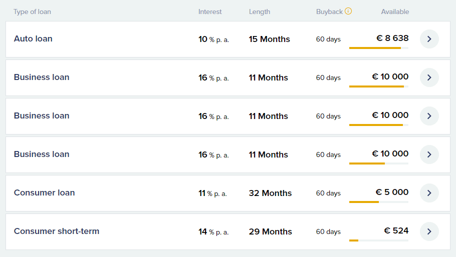 Trumpai aptarkime Bondster investicinius produktus. Jau minėjome, jog čia finansuosite paskolas - tiesa, kreditų pasirinkimas yra ganėtinai platus.